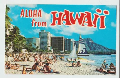 Title (ebay affiliate link): Aloha From Hawaii Waikiki Beach Vintage postcard 6210