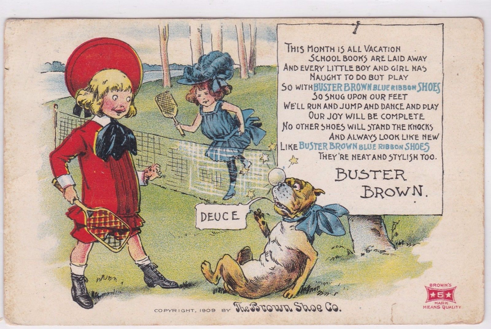 Title (ebay affiliate link): BUSTER BROWN SHOE PC PM 1909 LAWN TENNIS SCENE OTO IOWA WELCH & SMITH POEM