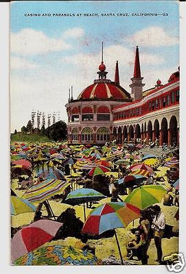 Title (ebay affiliate link): Vintage Postcard - Casino & Parasols at Beach, Santa Cruz, California