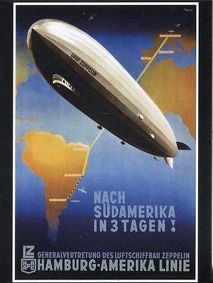 Title (ebay affiliate link): POST CARD OF TRAVEL POSTER FOR GRAF ZEPPELIN AIRSHIPS GERMANY TO SOUTH AMERICA