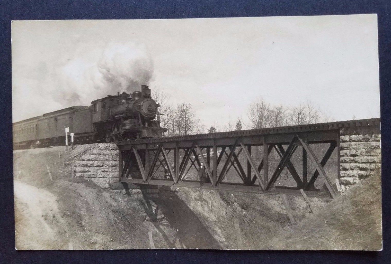 Locomotive / Passenger Train Crossing A Trestle Pre-1915 Real Photo Postcard (ej