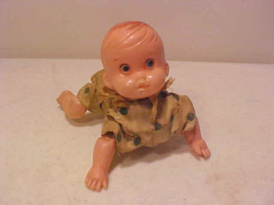 VINTAGE 50'S-60'S WIND-UP CRAWLING DOLL BABY