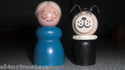 60s Vintage FP Little People 2pc ALL WOODEN w/ Rivets