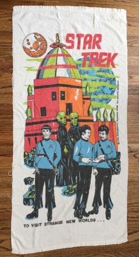 Title (ebay affiliate link): Vintage 1975 Star Trek Beach Towel, Spock, Kirk, And Mccoy