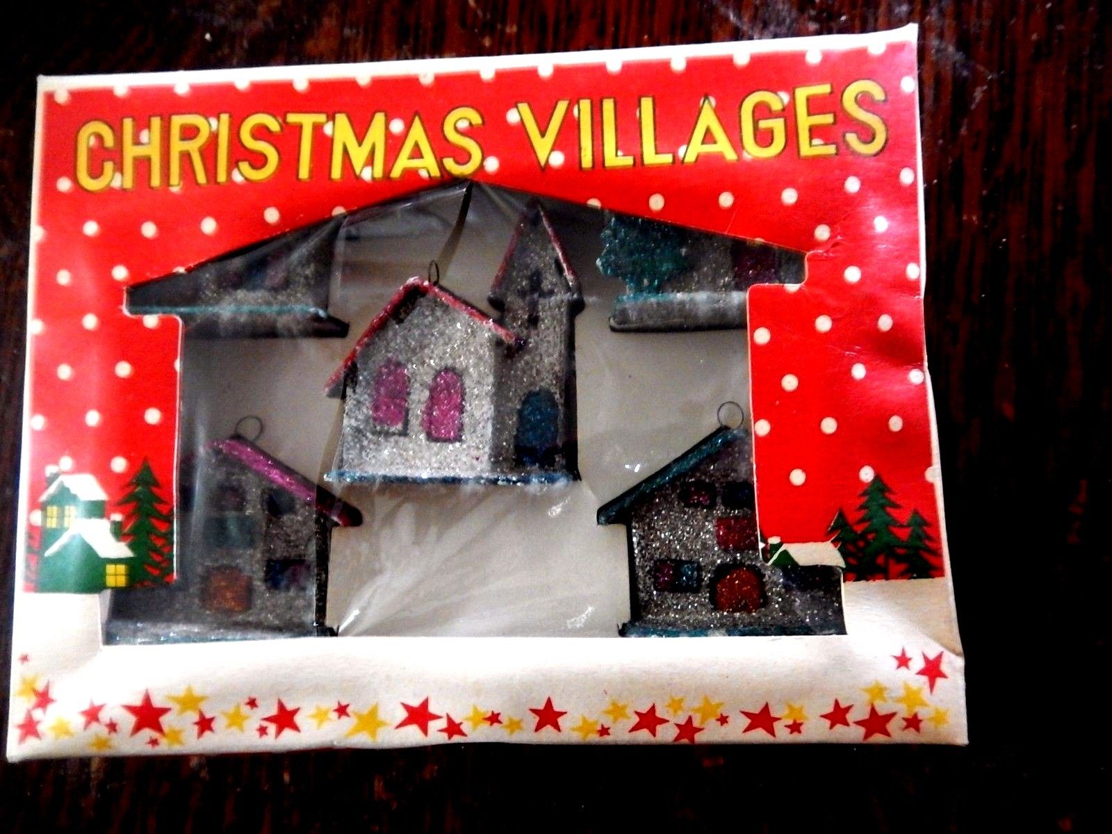 Title (ebay affiliate link): Vintage Box of Five Cardboard Glitter Houses - Christmas Villages - Japan
