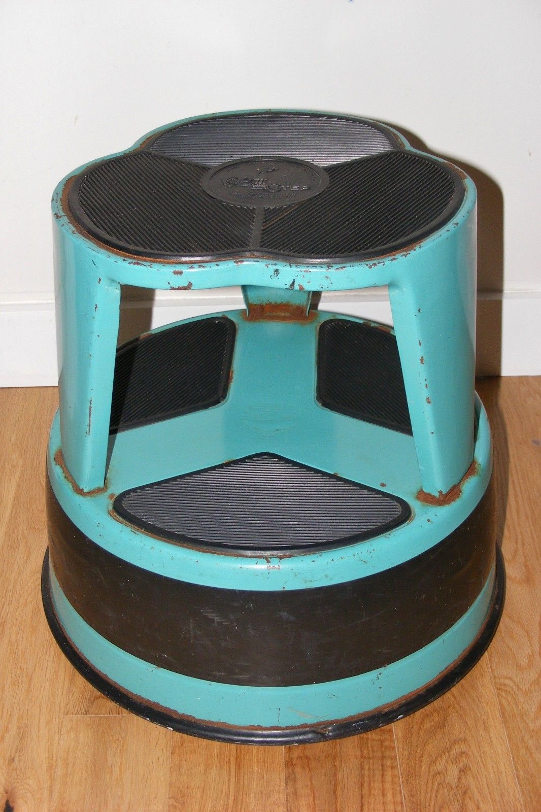 Title (ebay affiliate link): Vintage 1950/60s Kik Step Eames Era/Mid Century Library Step Stool Aqua/Black