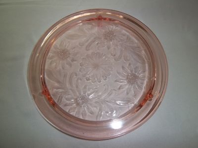 Jeannette Glass Cake Plate Pink Depression SUNFLOWERS