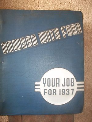Title (ebay affiliate link): 1937 Ford "Onward With Ford" Dealer 3-ring binder Embossed lettering FoMoCo V-8