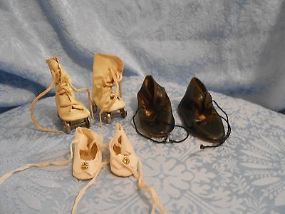 3 Pair Antique/Vintage Doll Shoes & Roller Skates
