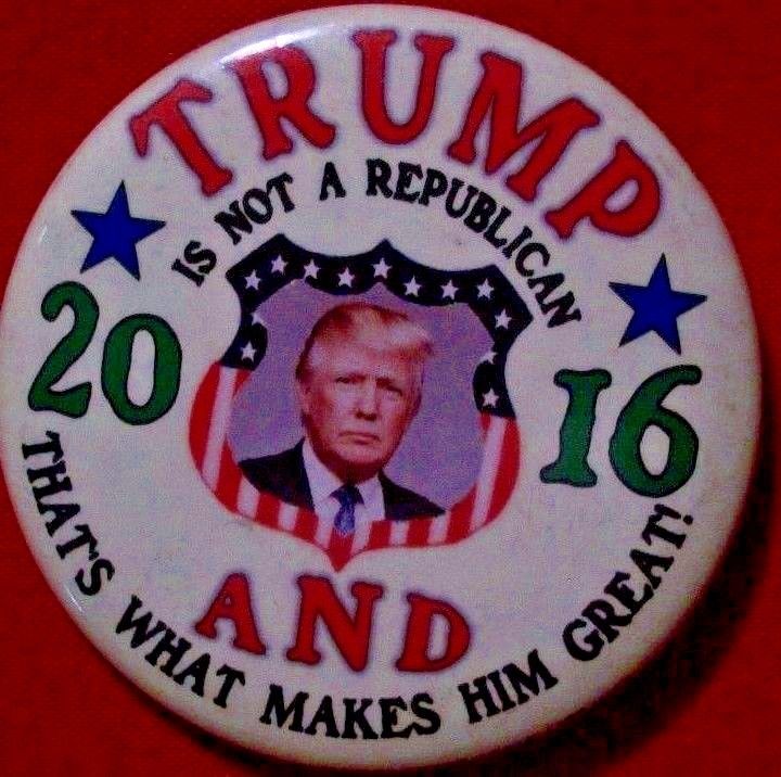 Title (ebay affiliate link): Limited Edition ANTI GOP Pin Badge TRUMP BUTTON pinback 2016 Hillary Campaign