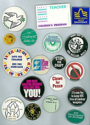 Title (ebay affiliate link): 18 Vintage 1980s Peace & Anti-Nuclear War Pinback Buttons Profits Of Doom