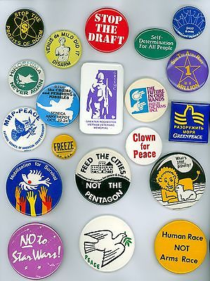 Title (ebay affiliate link): 20 Vintage 1980s Stop The Draft Anti-War Pinback Buttons Shut Down Indian Point