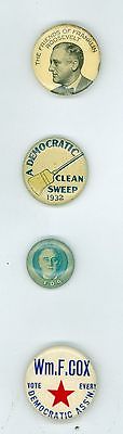 4 Vintage 1930s President Franklin Roosevelt Political Campaign Pinback Buttons