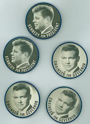 5 Vintage 1960's John Kennedy Swanson Political Pinback Buttons Flicker Flasher