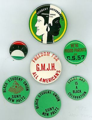 Title (ebay affiliate link): 7 Vintage 1970s-80's Black Social Justice Pinback Buttons New York BSU New Paltz