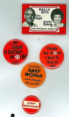 5 Vintage 1970-80's Communist Party USA Political Pinback Buttons Hall Davis