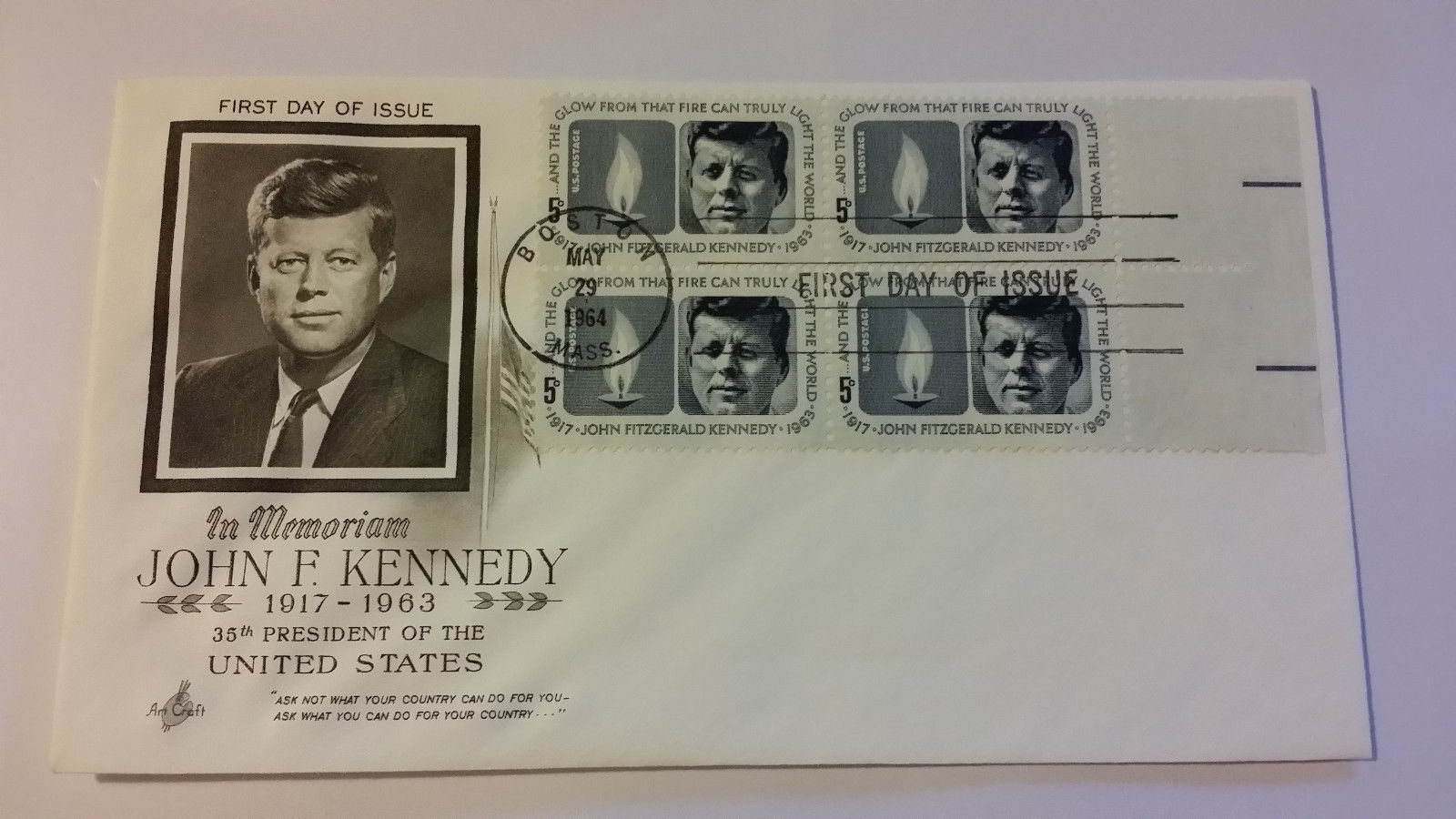Title (ebay affiliate link): Original JFK Memorial 4 Four Stamp FDC Cover May 29th 1964
