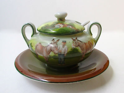 Royal Bayreuth China Mustard Pot Featuring a Man with Burros - Blue Mark