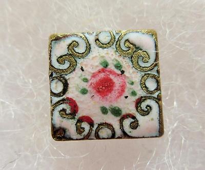 Darling Itty Bitty Antique Diminutive Doll Champleve ENAMEL BUTTON w/ Pink Rose