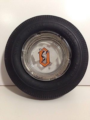 Vintage ADVERTISING ASHTRAY - OLYMPIC AIR-RIDE TYRE Glass Insert with Logo