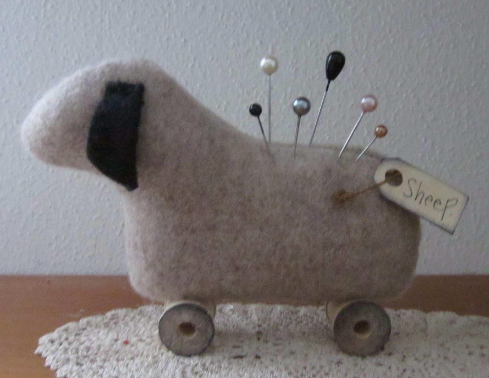 Title (ebay affiliate link): PRIMITIVE WOOL SHEEP LAMB MAKE DO SPOOL PIN CUSHION PFATT