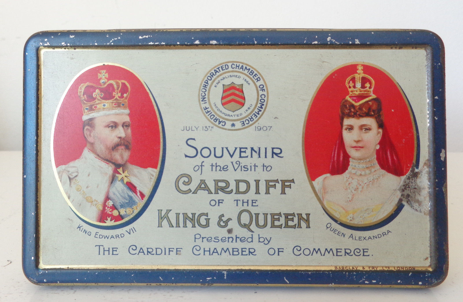 Title (ebay affiliate link): 1907 J.S. FRY CHOCOLATE TIN KING EDWARD VII AND QUEEN ALEXANDRA & ROYAL WARRANT
