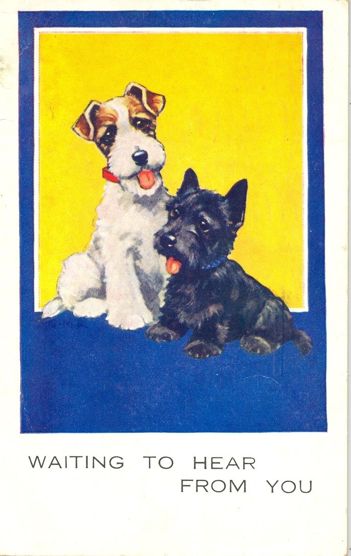 Title (ebay affiliate link): Comic Postcard: Fox terrier, Scottish Terrier & Scottie Dog Humour