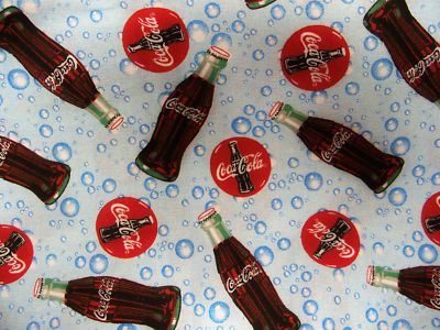 Title (ebay affiliate link): Coca-Cola Blue Bubbles Fabric Tablecloth 35"x38"