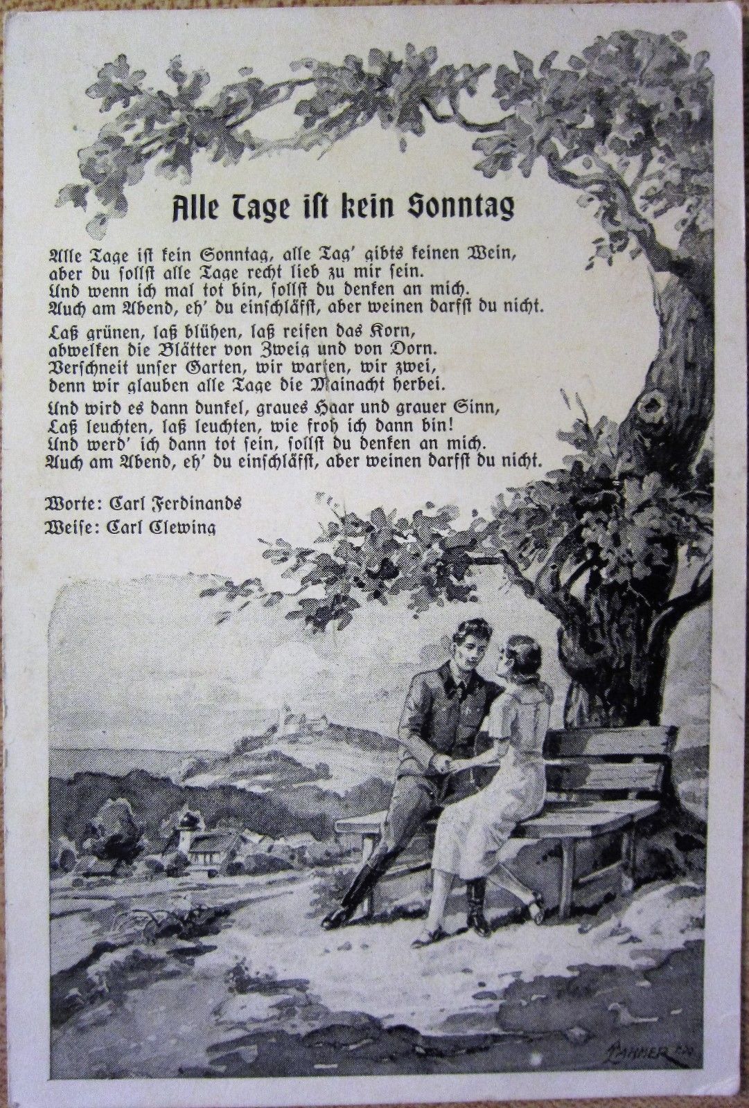 Title (ebay affiliate link): Original WWII German Romantic Poem Song Postcard Alle Tage ist kein Sonntag