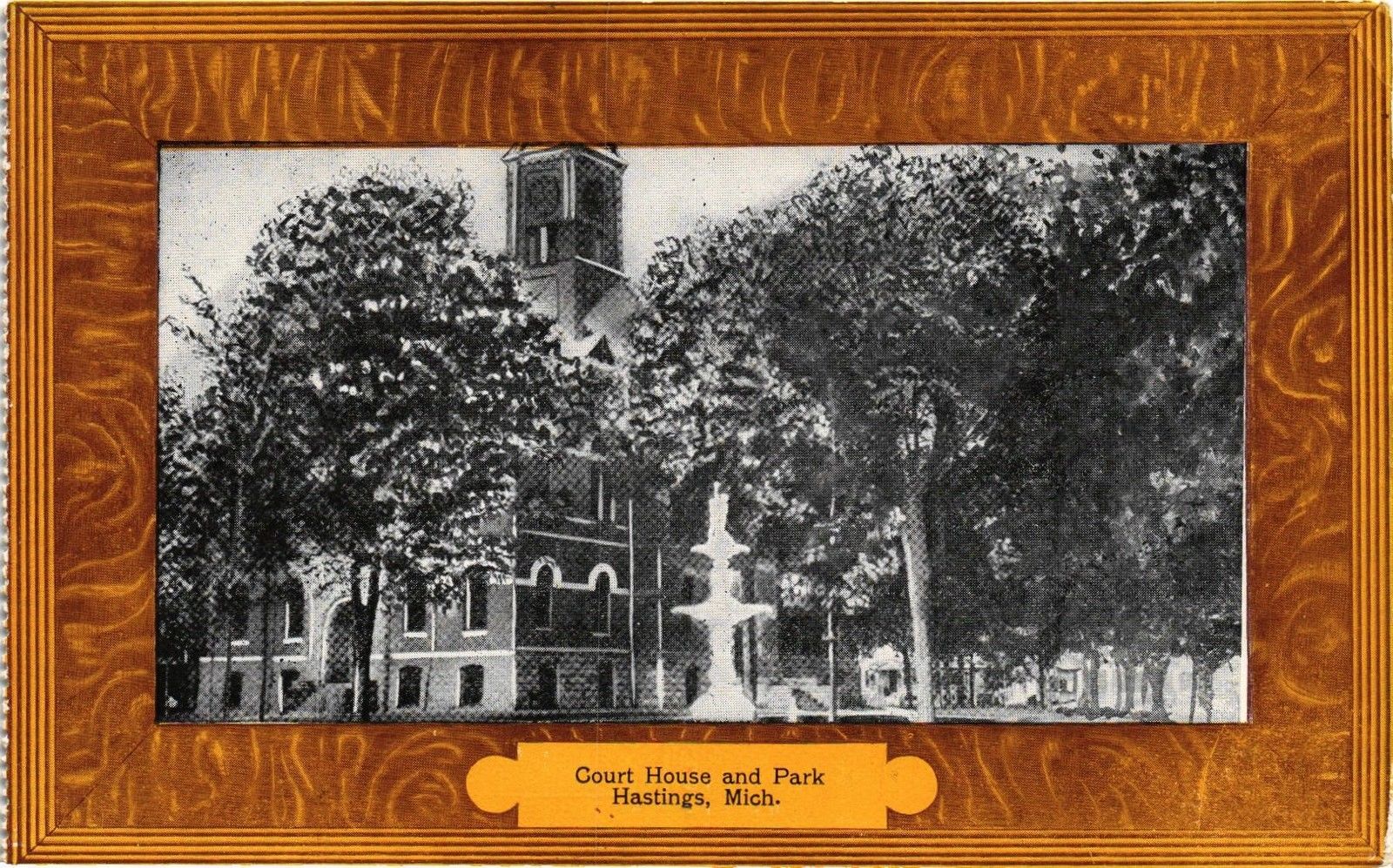 Title (ebay affiliate link): DR JIM STAMPS US COURT HOUSE AND PARK HASTINGS MICHIGAN POSTCARD