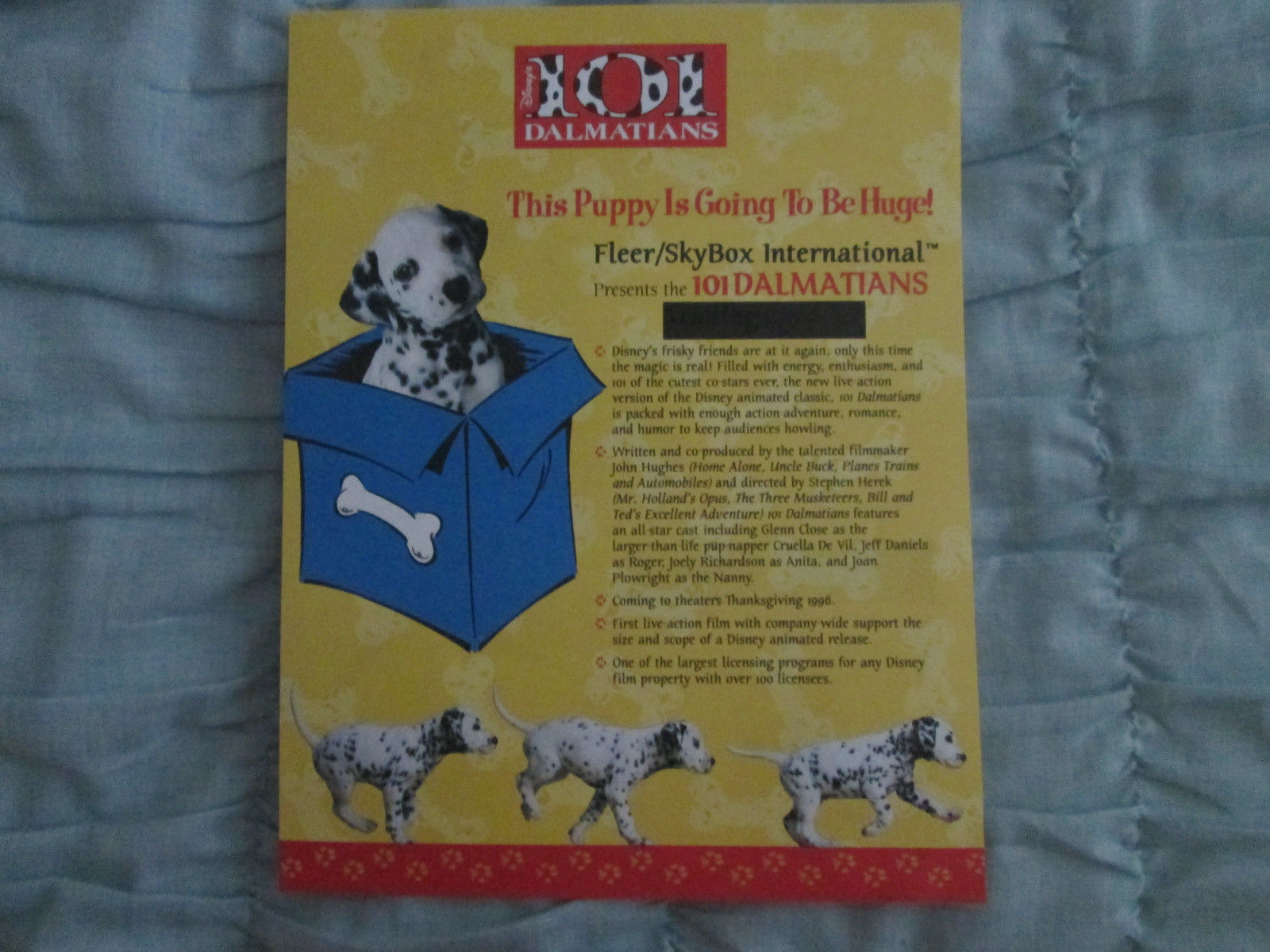 Title (ebay affiliate link): 1996 Fleer/Skybox Disney's 101 Dalmatians Dealer's Ad Sheet