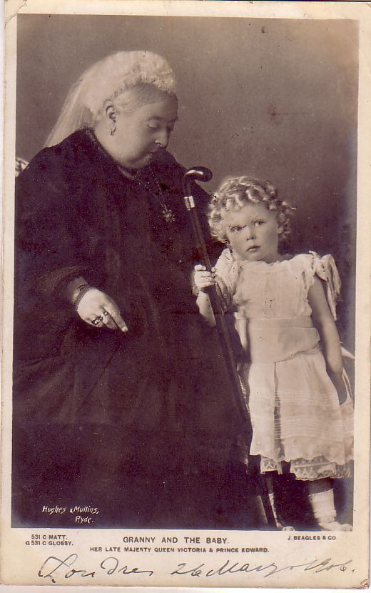Title (ebay affiliate link): U.K. - 1906 Granny and the baby. Her Late Majesty Queen Victoria used postcard