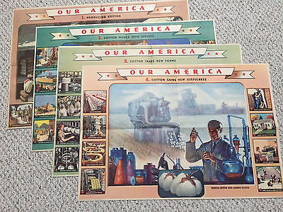 Vintage Our America Coca Cola Posters Set of 4: Cotton 1940's