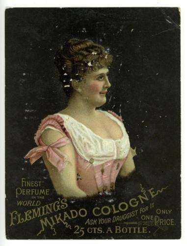 Title (ebay affiliate link): Fleming's Mikado Cologne Perfume Drover Huntington IN Victorian Trade Card
