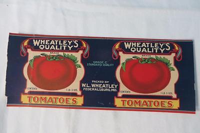 VINTAGE LABEL WHEATLEY'S QUALITY BRAND TOMATOES W.L. WHEATLEY FEDERALSBURG MD
