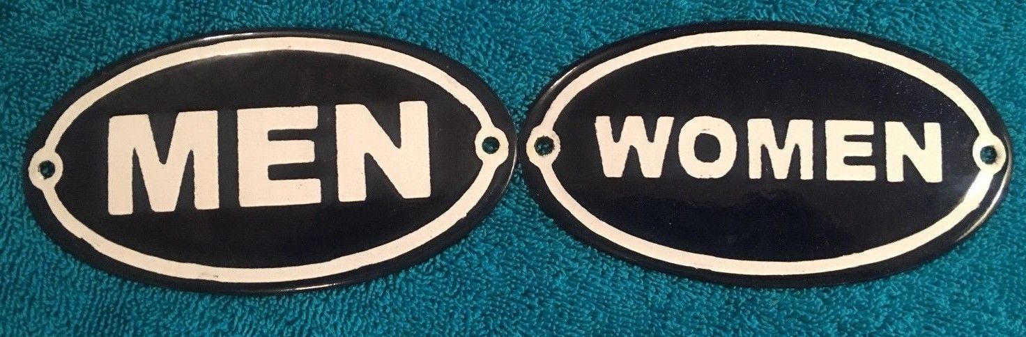 VINTAGE ENAMEL PORCELAIN METAL SIGNS WOMEN AND MEN RARE SIGNS RESTROOM