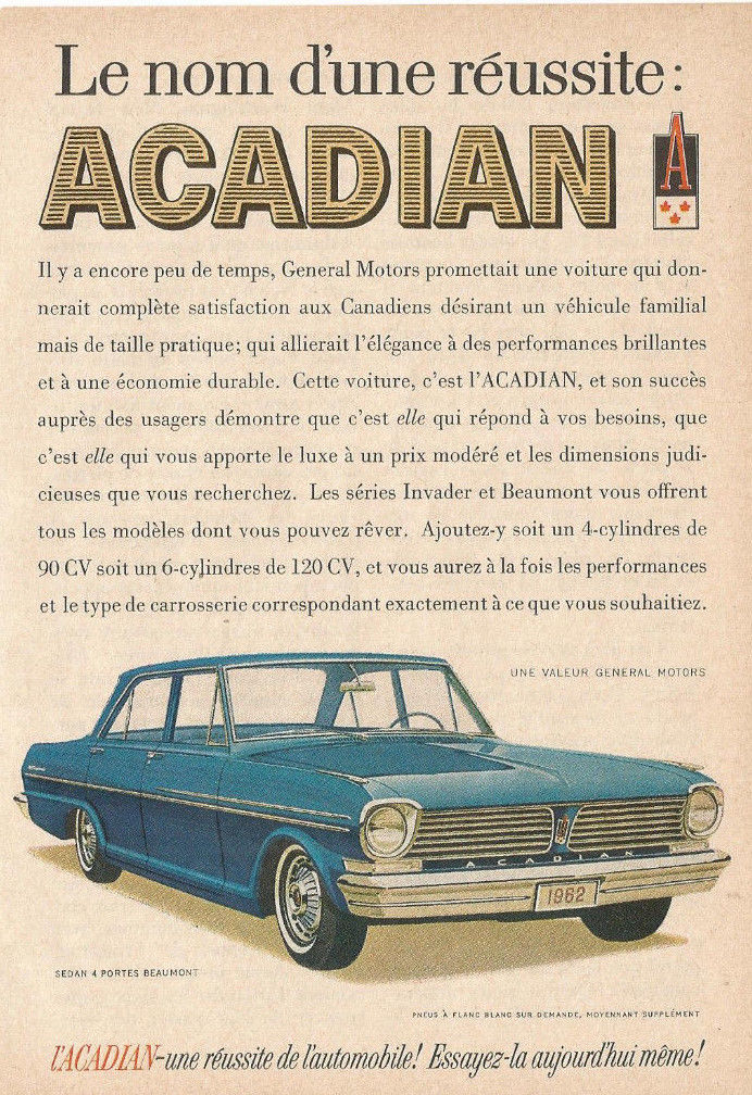 Title (ebay affiliate link): 1962 ACADIAN AUTOMOBILE ORIGINAL ERA AD