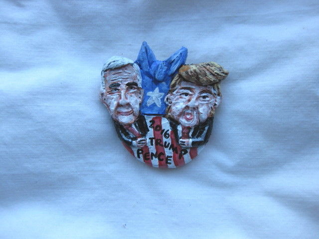 Title (ebay affiliate link): Donald Trump & Mike Pence wrapped in Flag 2016 Presidential Campaign Novelty pin