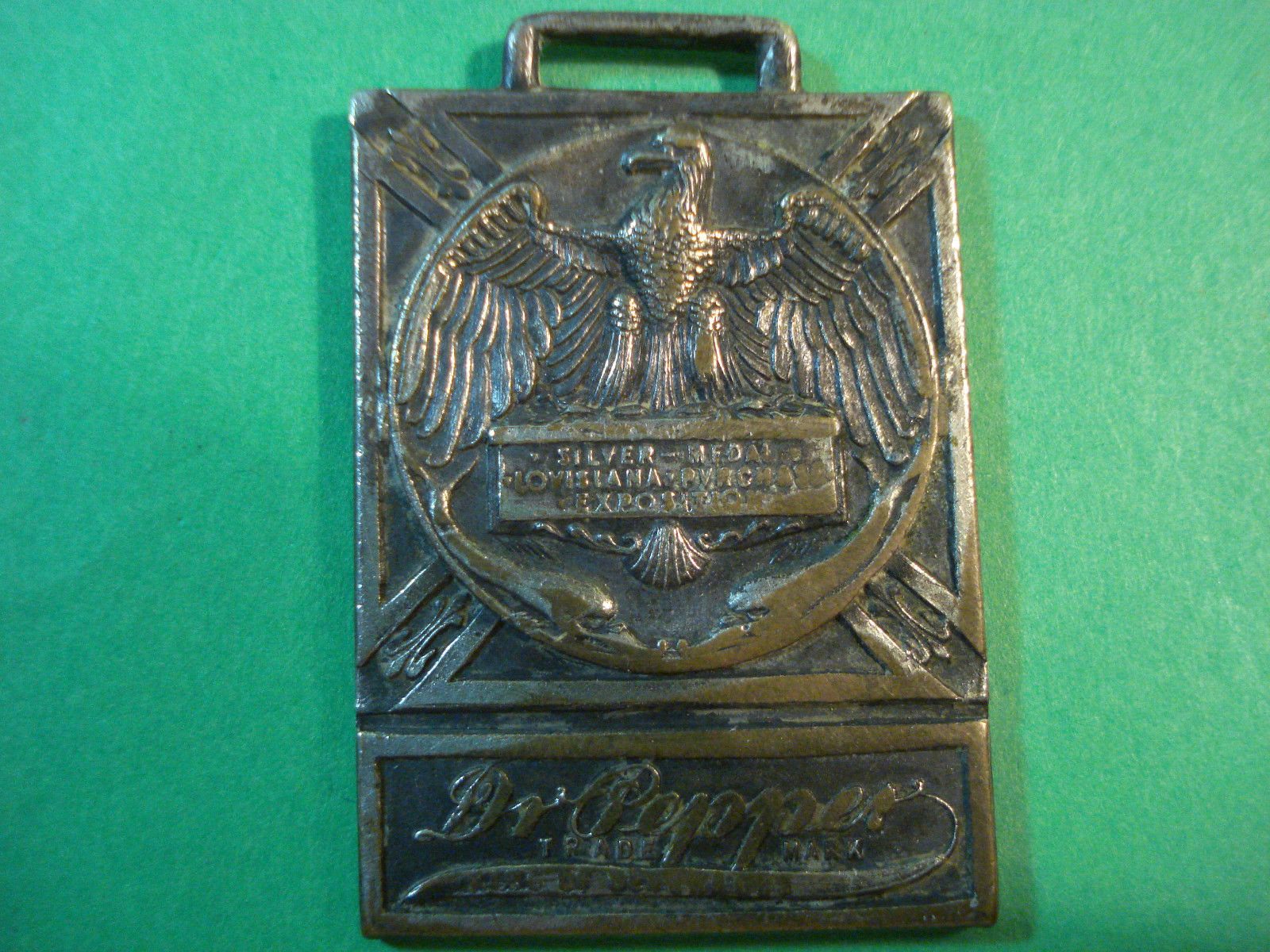 POCKET WATCH FOB DR. PEPPER MADE BY SCNWAAB-MILWAUKEE, WI. LA. PURCHASE 1904