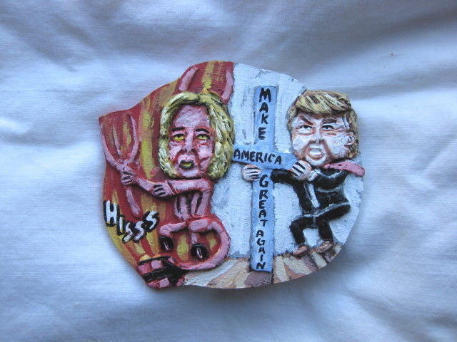 Title (ebay affiliate link): Donald Trump Vs Hillary Devil 2016 Presidential Campaign Novelty pin