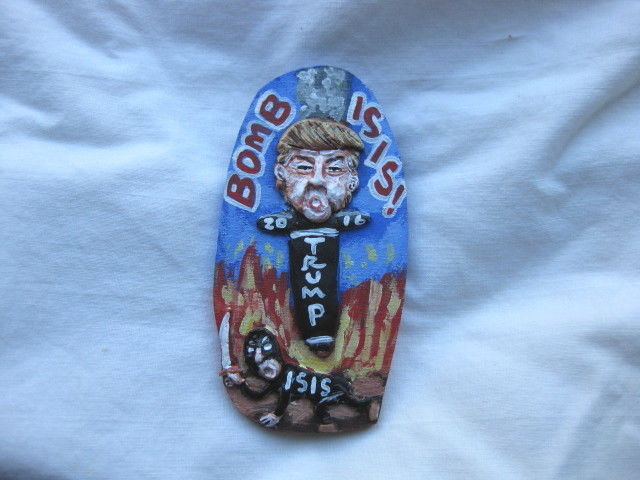 Title (ebay affiliate link): Donald Trump "Bomb ISIS" 2016 Presidential Campaign Novelty pin