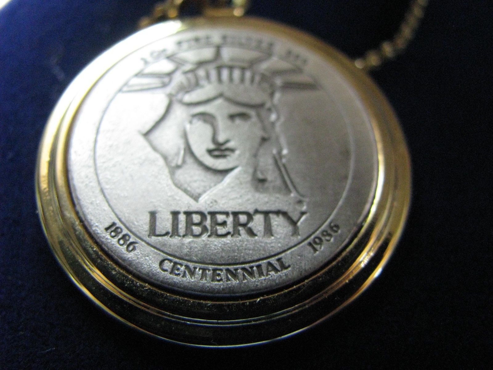 Title (ebay affiliate link): STATUE OF LIBERTY CENTENNIAL 1886-1986 NECKLACE PENDANT GOLD LEAF