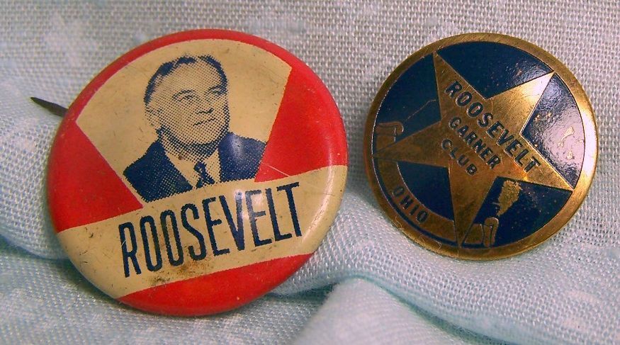 FDR Roosevelt Political Campaign Button Garner Club Pin Democrat Election