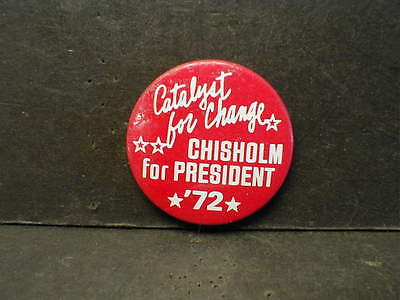 ORIG. 1972 SHIRLEY CHISHOLM FOR PRESIDENT CAMPAIGN BUTTON "CATALYST FOR CHANGE"