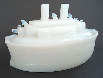 Title (ebay affiliate link): GENUINE Antique Milk Glass Covered BATTLESHIP WHEELING Pitcher Dish
