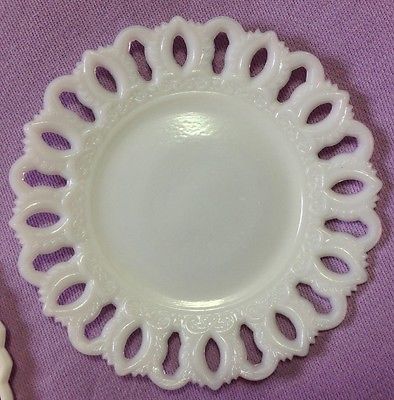 Vintage Milk Glass Open Lace Edge Plate