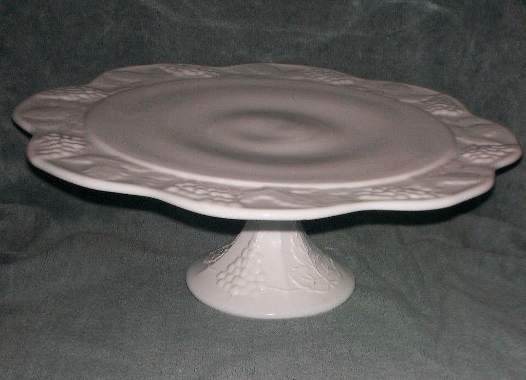 Title (ebay affiliate link): VINTAGE INDIANA HARVEST GRAPE WHITE MILK GLASS 13" CAKE STAND PEDESTAL PLATE