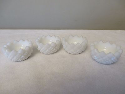 Four Vintage Open Salt Cellars - Milk Glass with Sawtooth Pattern
