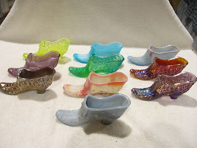10 Vintage Bowtie Carnival Milk Glass Shoes