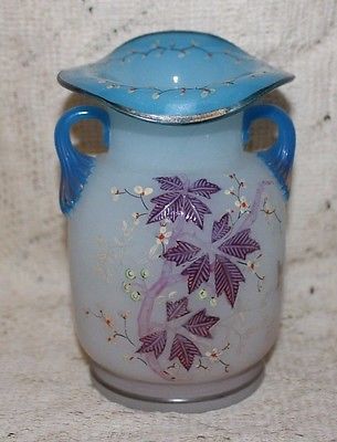 Title (ebay affiliate link): Antique Bristol Blue Cased Glass Vase with Enameled Flowers & Gold Butterfly